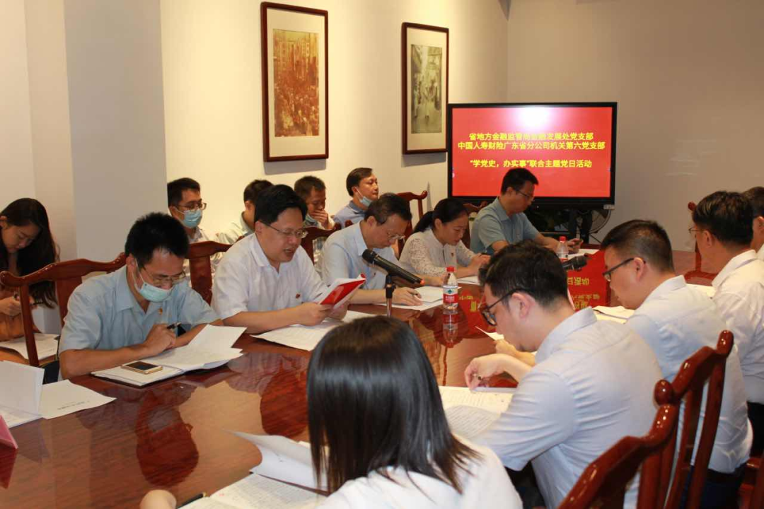 2021年9月1日上午,按照党史学习教育部署要求,省地方金融监管局金融发展处党支部与中国人寿财险广东分公司第六党支部联合开展了“学党史,办实事”主题党日活动。省地方金融监管局党组成员、副局长倪全宏,中国人寿财险广东分公司党委委员、机关党委书记、副总经理唐予翔等参加活动,省委党史学习教育第15巡回指导组有关同志莅临指导。